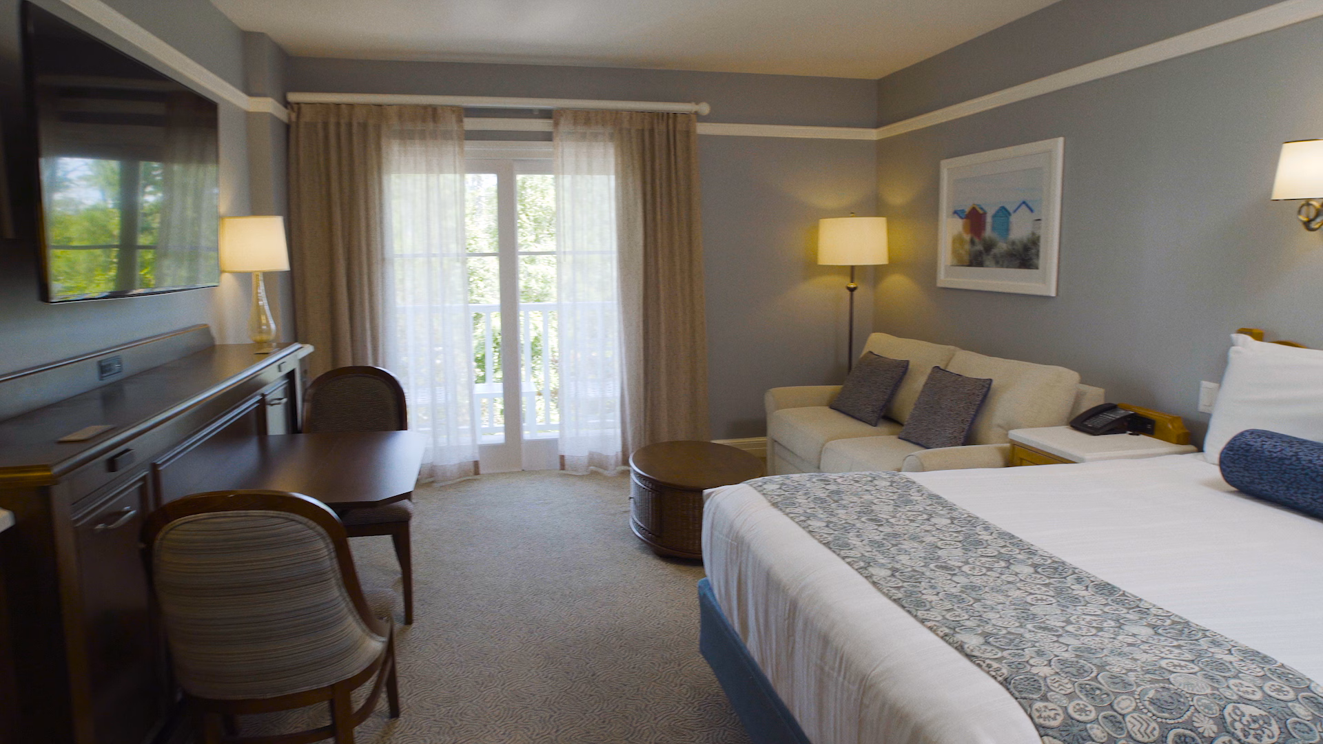 Deluxe Studio Villas, sleeps 5, features a Queen bed, double sleeper sofa, pull out bed from under the TV (murphy bed) and a kitchenette!