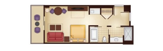 Deluxe Studio Villas feature one full bathroom and accommodate up to five Guests, plus one child under age three in a crib, and include a kitchenette, queen-size bed, queen-size sleeper sofa, one pull-down bunk size bed, flat-panel TV, DVD player and private balcony.