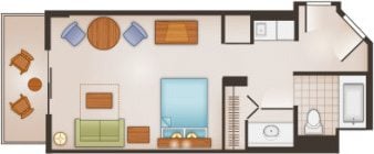 Studios feature one full bathroom and accommodate up to four Guests and include a kitchenette, queen-size bed, double-size sleeper sofa and private balcony.