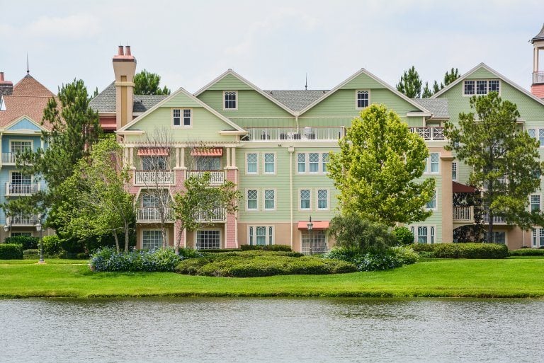 Disney’s Saratoga Springs Resort and Spa is just across the lake from Disney Springs and is accessible by a walking bridge or boat ride. It’s modeled after Saratoga Springs, NY and the equestrian theme runs deep here. They also feature the Treehouse Villas which are 3 bed, 2 bath standalone cabins in the woods with BBQ pits and we like to call it “Glamping” as Glorified camping! The resort consists of five swimming pools: three leisure pools and two feature pools including waterslides, whirlpool spas and aqua-play areas.