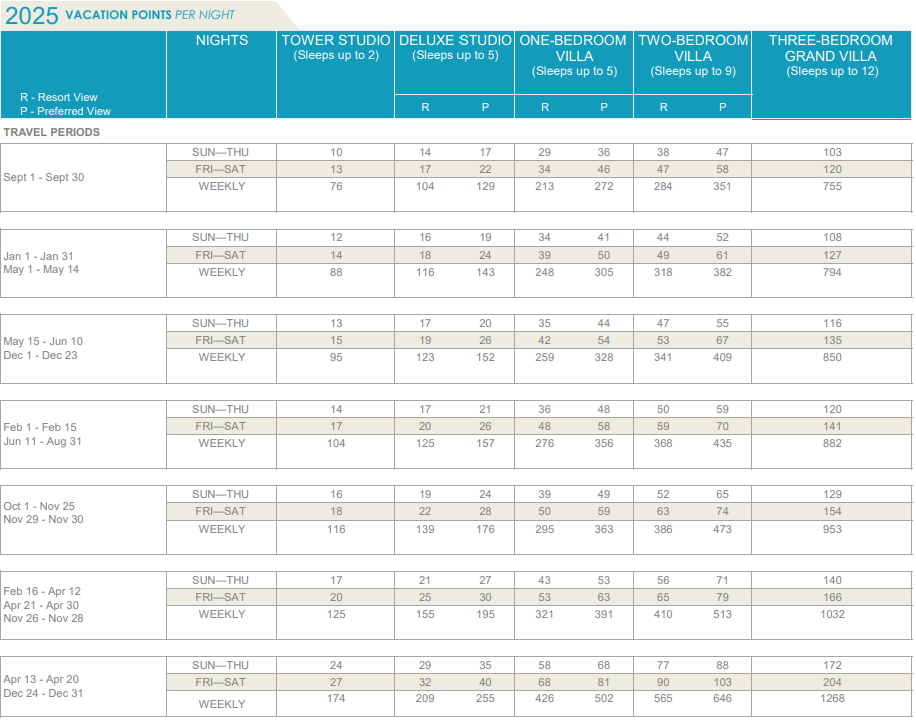 | Resort & ID | Pts. | Pts. Available | Use Year | $ / Pt. | Price | Status |