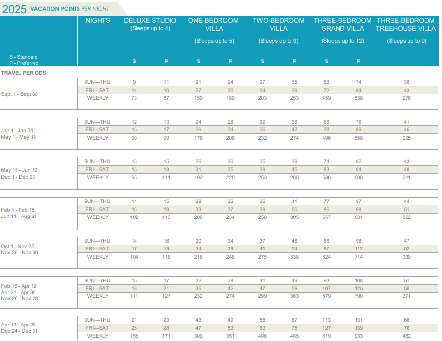 2025 Point Chart